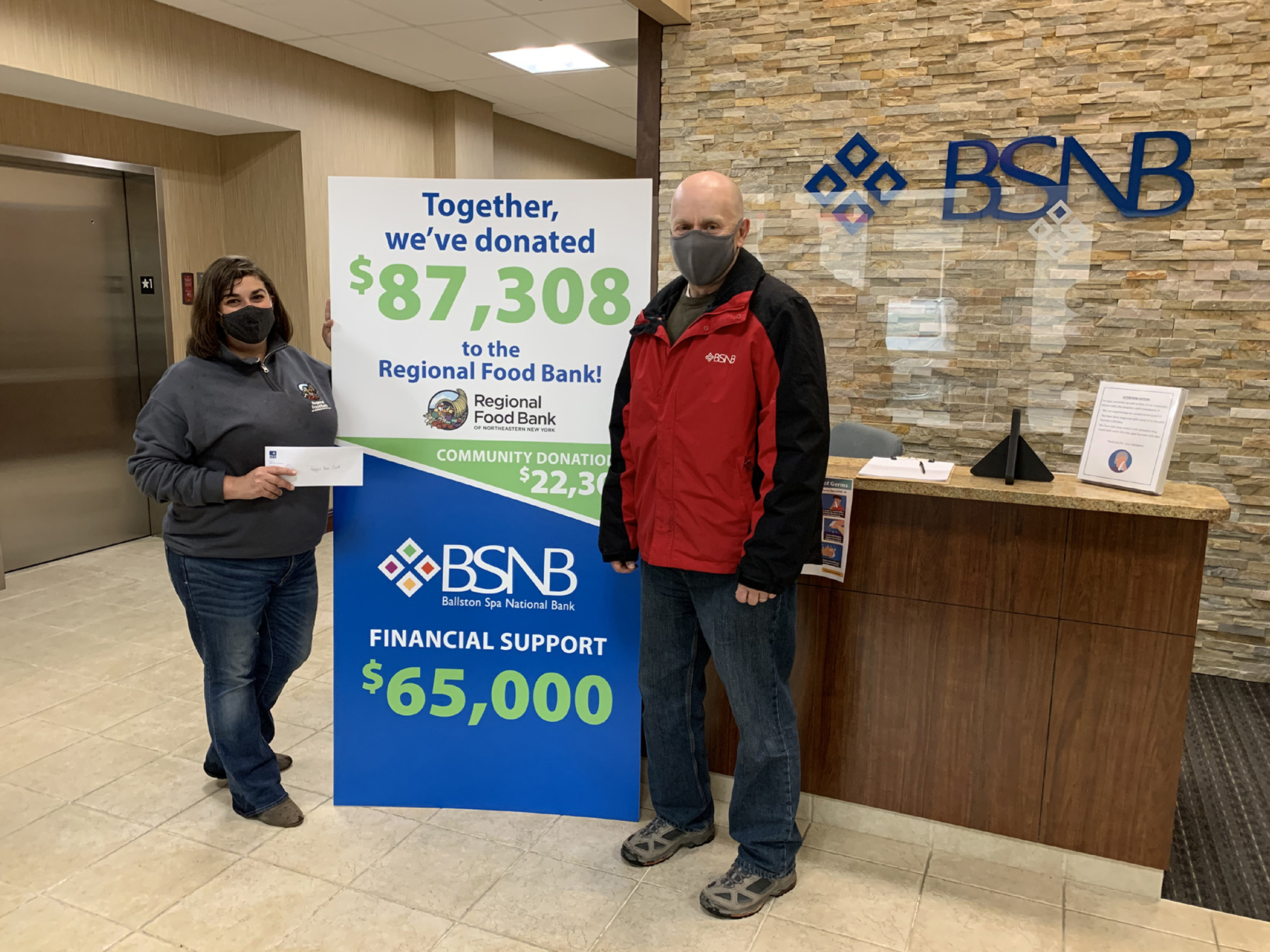 Members of the community wishing to help support this humanitarian outreach endeavor may donate directly via https://donatenow.networkforgood.org/1415634 and selecting ‘BSNB Matching Campaign’ as the donation designation. Donors may also make checks payable to the Regional Food Bank of Northeastern New York and drop them off at any BSNB banking location or mail to BSNB, ATTN: Regional Food Bank Matching Campaign, PO Box 70, Ballston Spa, NY 12020.