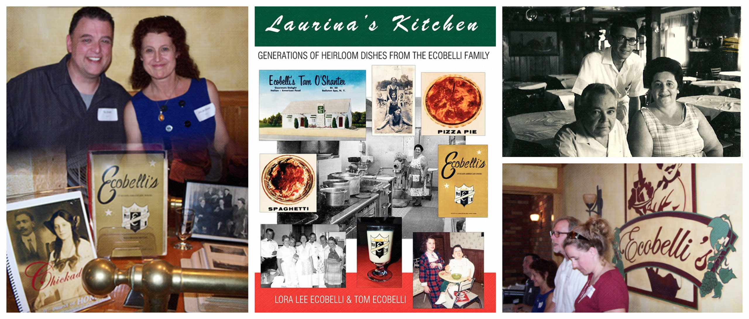 Published by Square Circle Press, Laurina’s Kitchen is described by publisher Richard Vang as “a colorful and eclectic mix of ephemera, such as menus, postcards and newspaper articles which combine to bring this Upstate New York institution back to life. Peppered throughout are images of the Ecobellis and their extended ‘family’ around the restaurant and at home as well as special memories contributed by staff, patrons and friends who were all a part of the restaurant’s devoted community.”