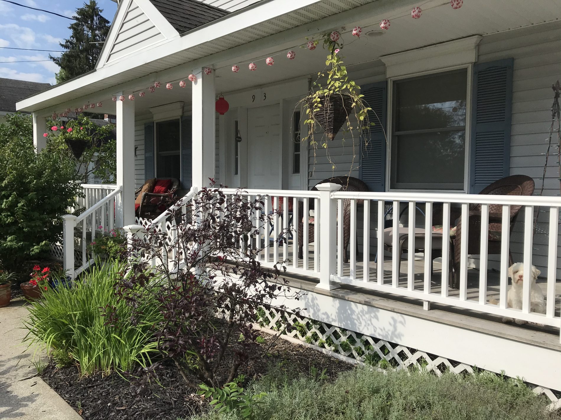 Porches provide an invitation to one’s house and, at the same time, they invite community spirit. How so? People walk or bicycle by, and I always say, “Hi, how’ya doing?!” Often folks will drive by and give me a wave when they see me on my porch, or give me a resounding, “Heyyyyy, Paulie!”. That makes me smile every time. My dog jumps for joy when I ask her if she wants to go on the porch. It’s village life.